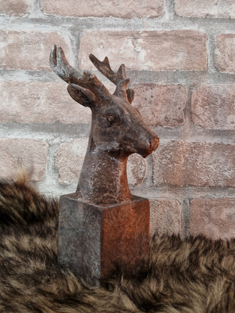 Stijlvol hertenbeeld van Countryfield in grijs steen, een elegant decoratiestuk voor plank, dressoir of bijzettafel.