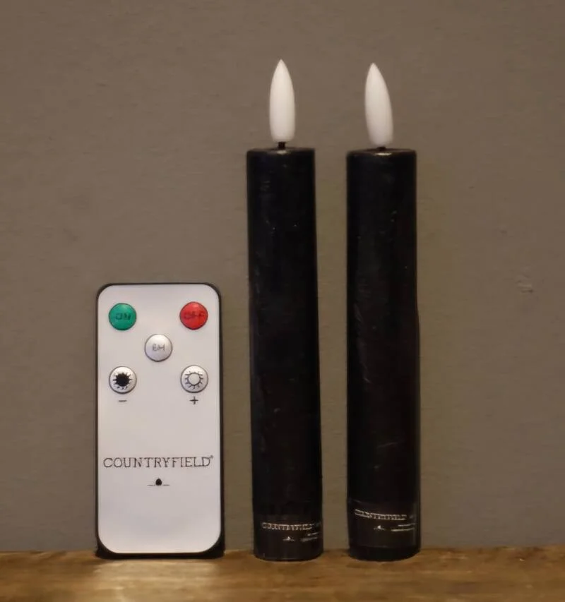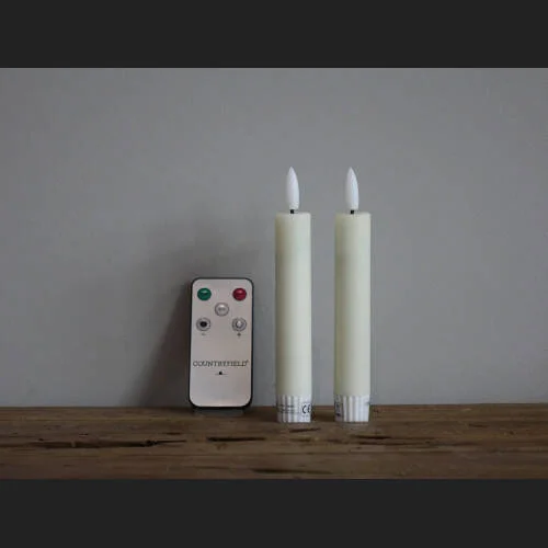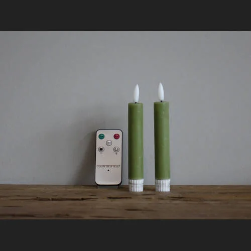 Setje van 2 LED dinerkaarsen maat S van het merk Countryfield. Deze set komt INCL afstandsbediening waarmee je de kaarsen aan/uit kan zetten, de timer kunt inschakelen of in drie standen kunt dimmen. Deze mooie kaarsen zijn verkrijgbaar in diverse kleuren.
