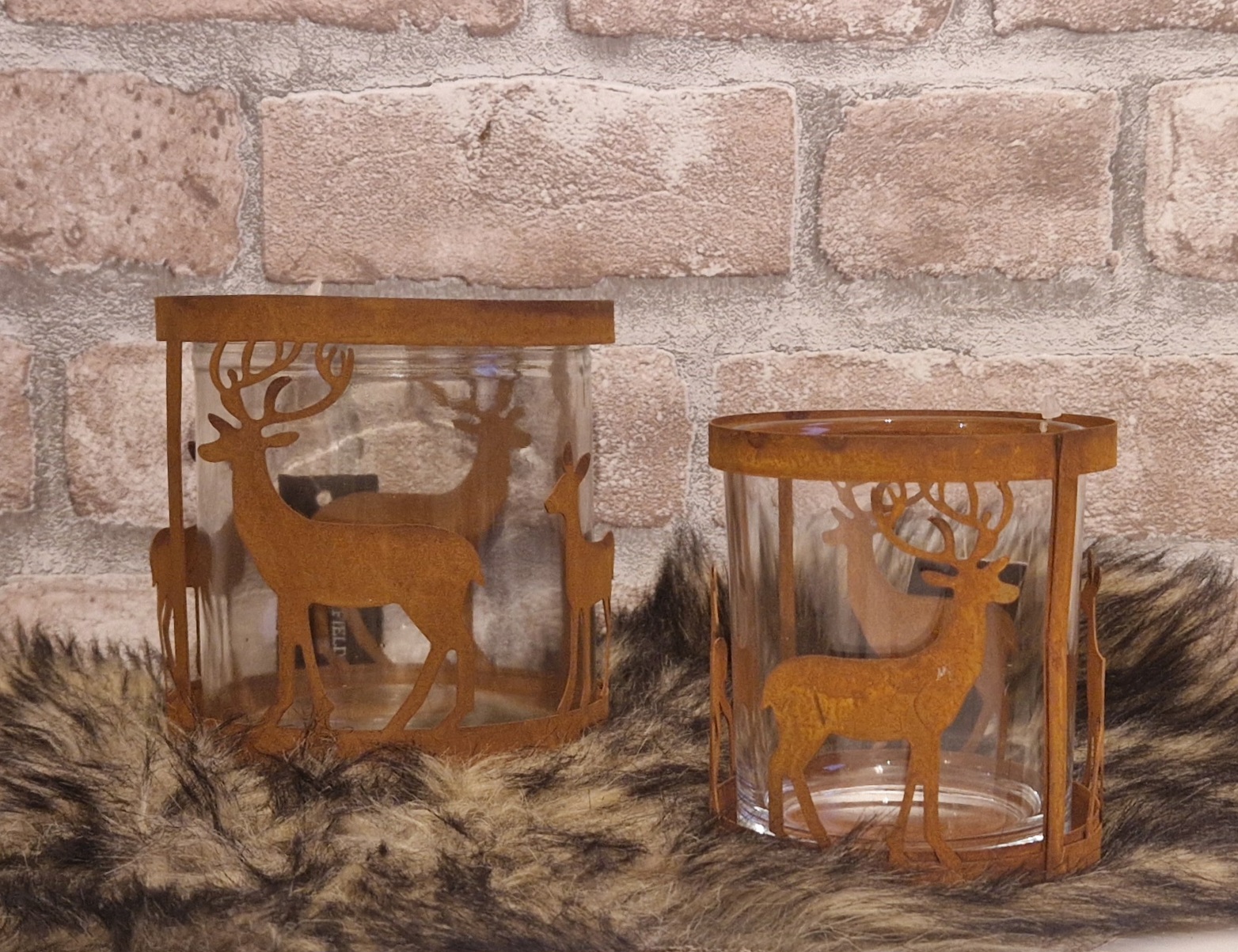 Creëer een warme, landelijke sfeer met deze prachtige waxinelichthouders in hertvorm. De roestkleurige afwerking geeft een stoere en natuurlijke uitstraling die perfect past bij herfst- en winterdecoratie.
